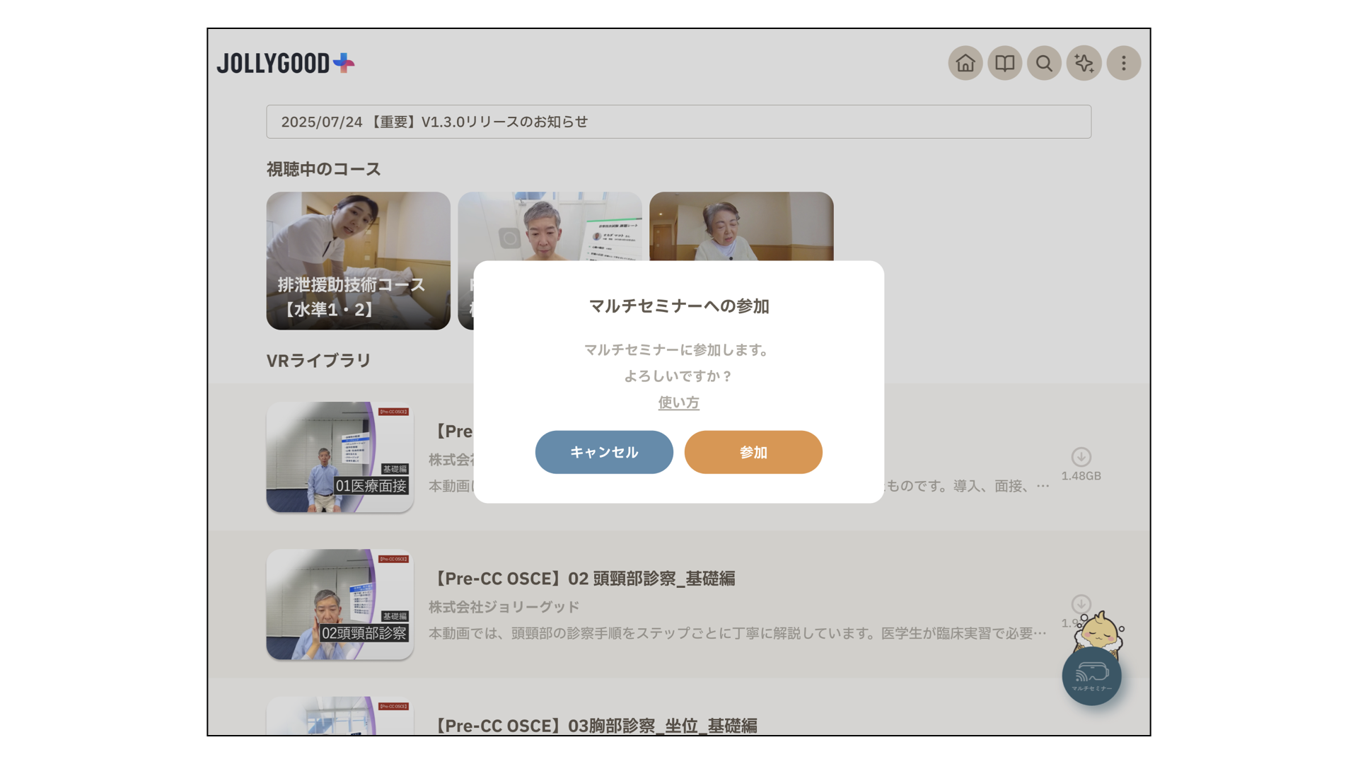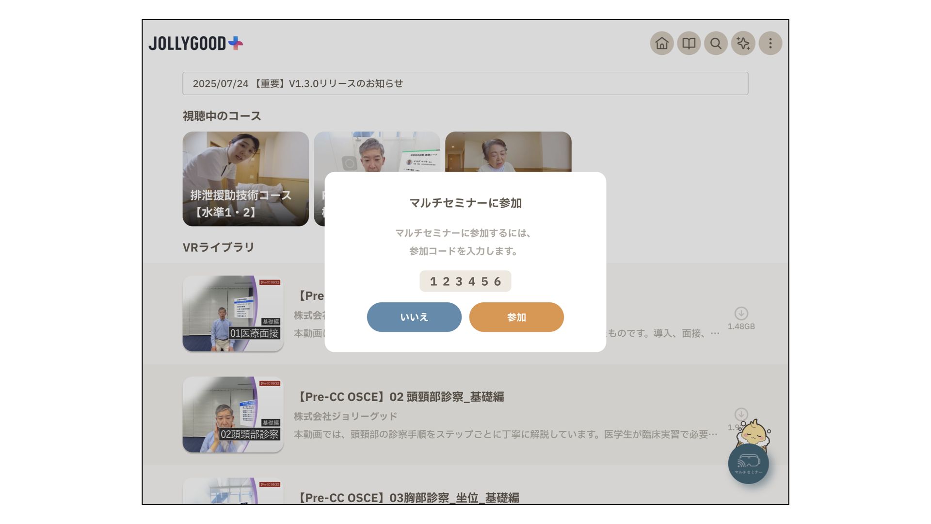マルチセミナーは、スマートフォンやタブレット(iOS/Android)からMeta QuestのVR動画再生をコントロールできる機能です。